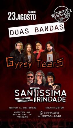 O Woodstock Bar, clássica casa de shows de Passos-MG, com mais de 25 anos de história, recebe neste sábado, 23 de agosto, uma noite dedicada ao melhor do Hard Rock e do Classic Rock com as performances das bandas Gypsy Tears e Santíssima Trindade.