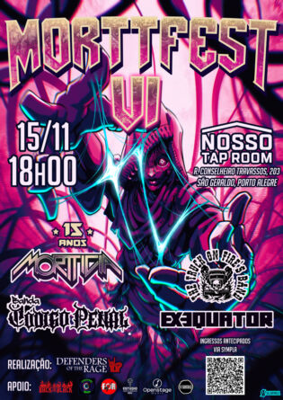 Já consolidado como um dos principais festivais do underground de Porto Alegre, o Morttfest chega à sua sexta edição em novembro, celebrando os 15 anos de trajetória da banda Mortticia e mantendo o compromisso de promover a cena do metal autoral gaúcho. O Morttfest VI reúne quatro bandas de propostas e origens distintas, cada uma representando diferentes vertentes do rock e do metal, assim como diversas regiões do Rio Grande do Sul.